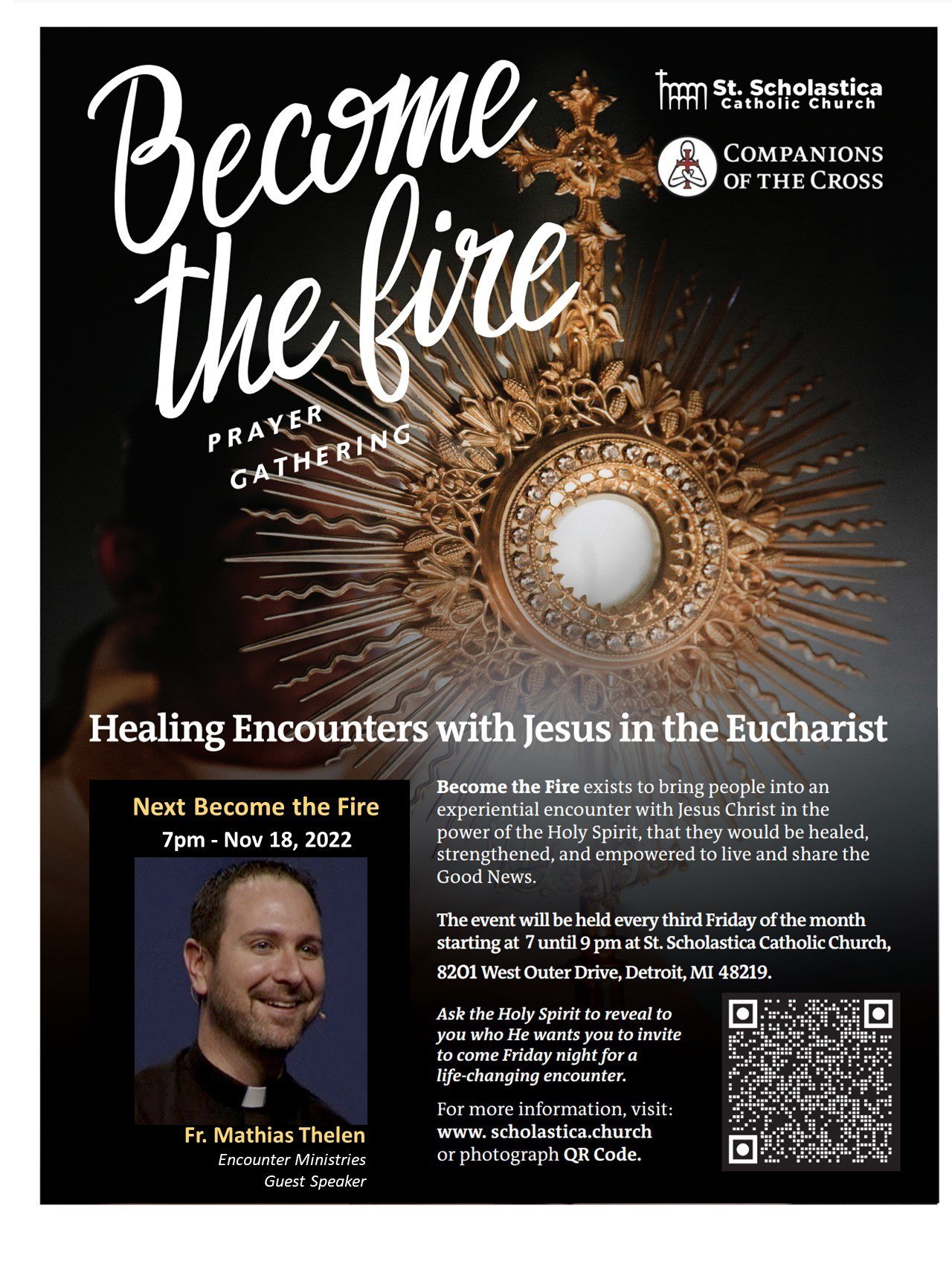 All are invited to 'Become the Fire Prayer Gathering' at 7:00 p.m. on Friday, November 18, at St. Scholastica parish in Detroit.