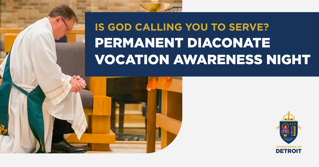 Those in the Archdiocese of Detroit considering a call to the permanent diaconate, and their wives, are invited to a diaconate vocation awareness night Tuesday, February 15, 2022. Please join us at Sacred Heart Major Seminary from 7 p.m. - 8:30 p.m.